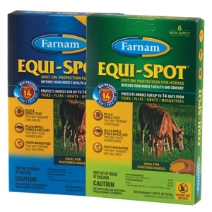 Insects are more than annoying; they can also transmit serious diseases. You can’t always be there to apply fly and insect protection, but Equi-Spot® Spot-On Protection for Horses does the job for you. Applied once every two weeks, Equi-Spot Protection For Horses provides long-lasting control against dangerous ticks that can spread Lyme disease and mosquitoes that may transmit West Nile Virus and Equine Encephalitis, as well as biting flies and gnats. Choose Farnam Equi-Spot Protection For Horses and enjoy an insect free zone.