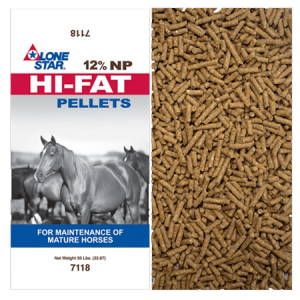 Lone Star 12% NP Hi-Fat Pellets is an economical, pelleted supplement for maintenance of mature horses.