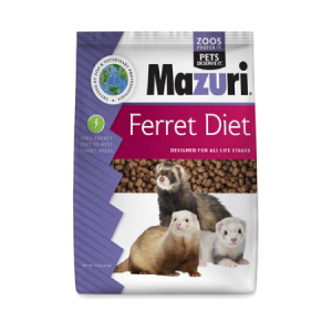 Mazuri Ferret Diet 5M08 in a 25-lb offers proper ferret nutrition in an extruded form for all life stages of ferrets. This is a highly palatable, nutrient-dense dry ferret food. It contains multiple animal derived proteins appropriate for carnivores. Mazuri ferret food contains high-quality ingredients for high digestibility. As a result, there is no need for ferret supplements when feeding Mazuri Ferret Diet 5M08.