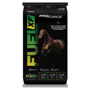 Nutrena ProForce Fuel contains high fat, controlled starch, beet pulp, and oat-based feed for equine athletes and hard keepers. Designed for optimal nutrition to minimize the negative effects of stress from rigorous training and competition in performance horses. Utilizes Rebound Technology which is a proprietary formulation including chromium and amino acid technology to support healthy exercise recovery. Restores energy to muscles after competition or a workout. Nutrena ProForce Fuel supports recovery and maintenance.