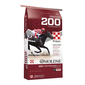 Purina Molene 200 Performance RT Horse Feed provides optimal performance nutrition for horses competing in any discipline. Now with Outlast Gastric Support Supplement. Ideal for competition and performance horses. Also excellent for the added fortification needs of breeding, mares in foal, lactating mares, and yearlings.