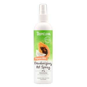 TropiClean Papaya Mist Deodorizing Pet Spray adds extra freshness to your pet’s coat after bathing or between baths. Condition your pet’s coat while reducing static. Leaves a long-lasting tropical papaya fragrance that lasts for days.